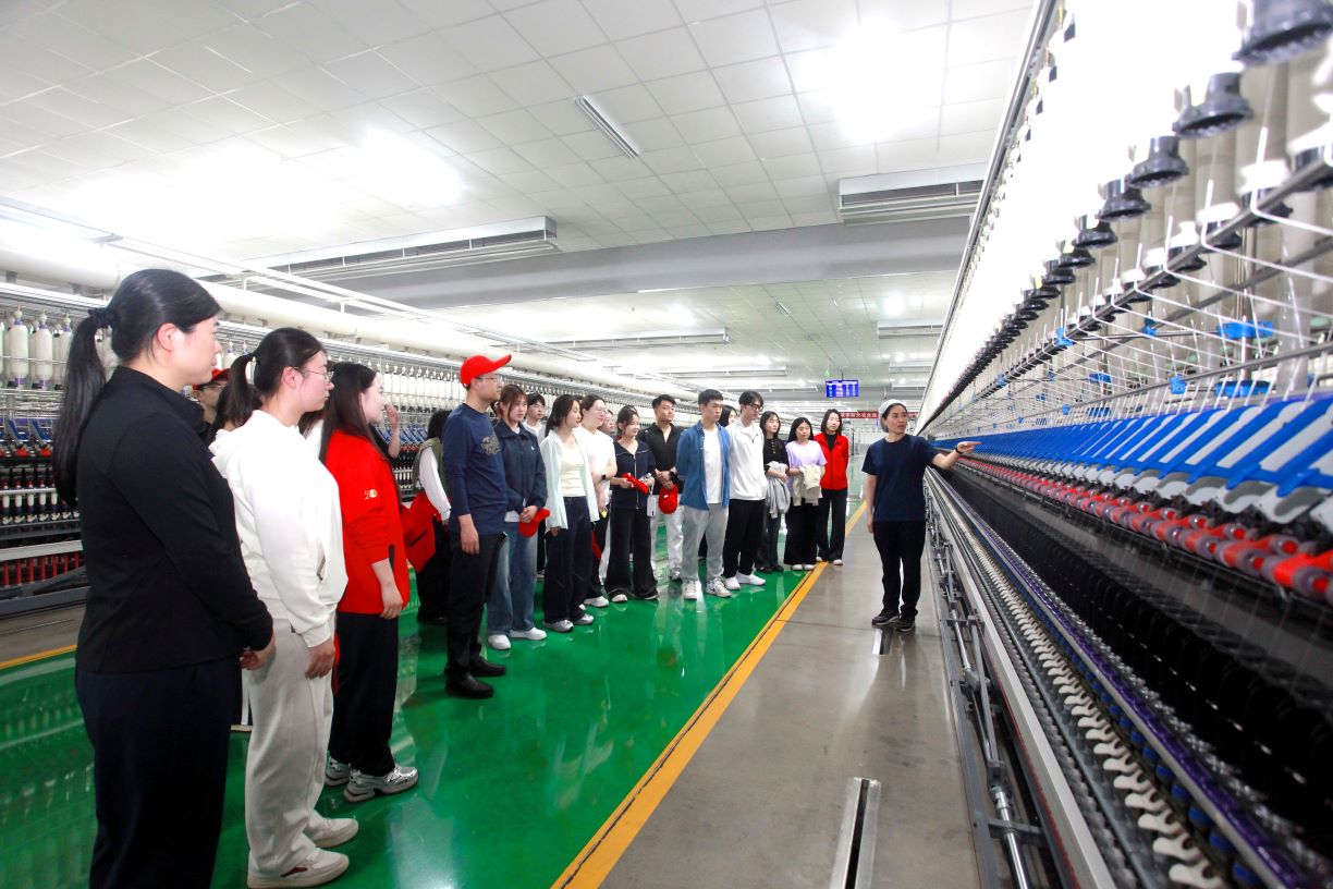 走进十万纱锭智慧纺纱工厂,全流程智能化纺纱装备,实现了运营智能化、装备智联化、制造数字化,可生产高端多功能纤维材料,用工由原来的1万锭50人降为10人以下,填补了我市新型高档纺纱生产空白。大家全面了解智能化纺纱装备,积极提问、认真学习纺纱流程,提升自身专业水平和知识素养。